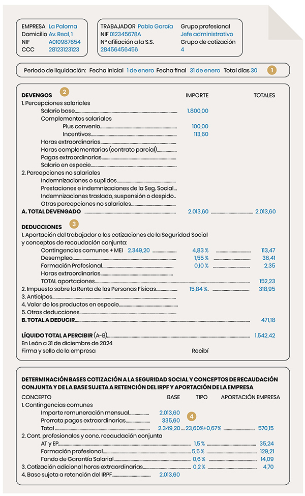 - La seguridad social y las prestaciones asociadas a cada nómina.